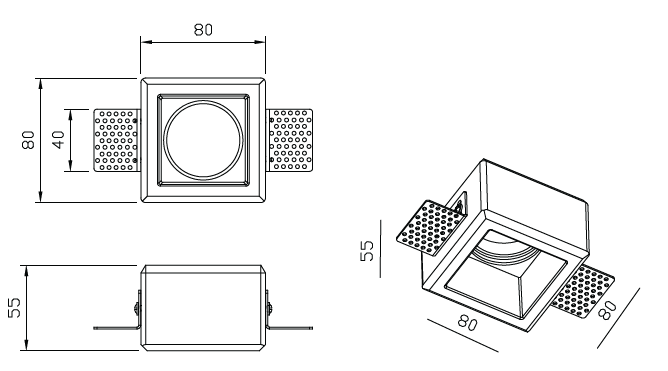 Incasso: 80×80 mm – h 55 mm