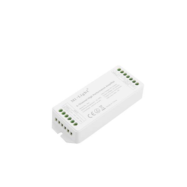 In particolare questo amplificatore per strisce di LED, è utilizzato per collegare più LED e controllarne l’utilizzo tramite un solo telecomando. La confezione contiene un alimentatore, con alimentazione 12-24 Vac e una corrente in uscita 6A per canale.