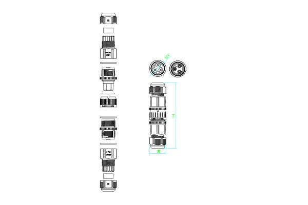 Il connettore supporta una corrente massima di 16A ed è dotato di grado di protezione IP68 5 BAR. Garantisce protezione contro l’ingresso di polvere e permette l’immersione permamente in liquidi (massimo 3 metri di profondità e per più di 1 ora).
