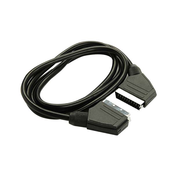 La presa è dotata di un cavo, della lunghezza di 1,5 mt con all’estremità due spinotti della tipologia 21 pin. Ciascuna presa è formata da 20 pin che vicolano il segnale elettrico analogico in entrata o in uscita dalla presa scart. Il 21esimo pin, è dato dal bordo metallico della presa che connette e veicola la massa della schermatura.